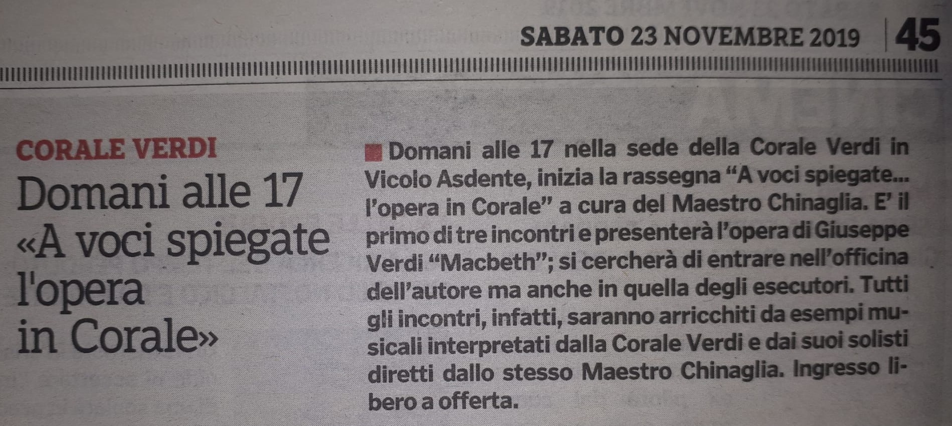 Rassegna "A voce spiegata.. l'Opera in Corale"- Macbeth